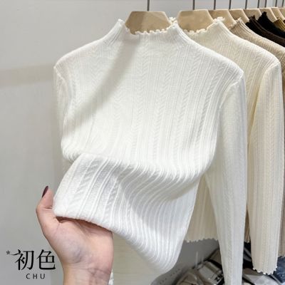 初色 木耳邊半高領條紋素色針織衫毛衣上衣-共5色-33368(F可選)$249