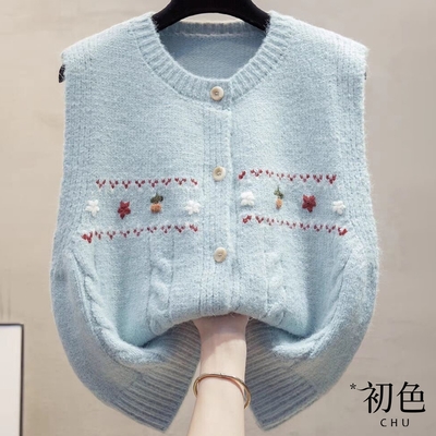 初色 甜美保暖圓領無袖開衫單排釦針織馬甲背心女背心-共4色-39712(F可選)$47775折