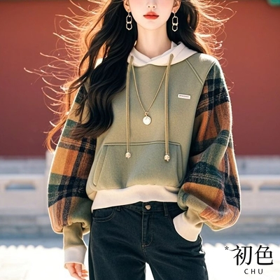 初色 休閒寬鬆印花拼接長袖連帽T恤-18款任選-38255(M-3XL可選)$48876折
