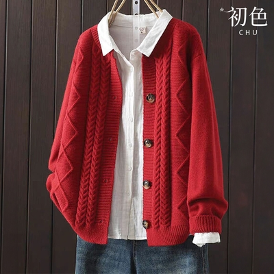 初色 純色針織單排釦長袖外套女上衣-3款任選-39131(M-2XL可選)$32576折