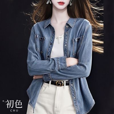 初色 休閒翻領牛仔襯衫外套女外套-共6款任選-10484(M-3XL可選)