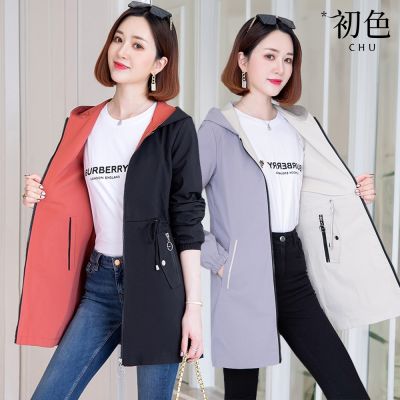 初色 純色兩面穿連帽拉鍊長袖風衣外套女外套-共3色-39146(M-4XL可選)