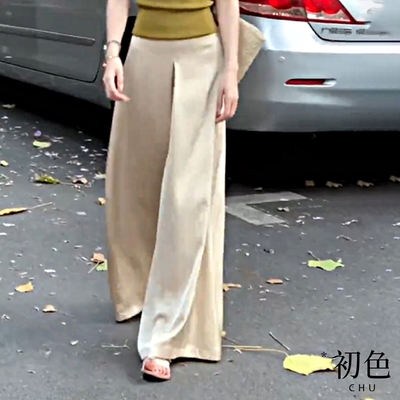 初色 薄款垂墜感高腰寬鬆褲裙闊腿喇叭褲長褲-共3色-68508(M-XL可選)$269