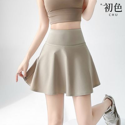 初色 純色高腰顯瘦透氣內襯瑜珈裙打底裙褲裙速乾褲-共5色-35627(M-2XL可選)
