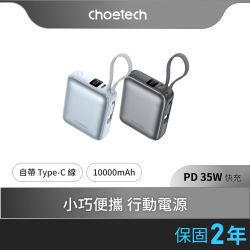 Choetech 掌心充|10000mAh 35W自帶線快充行動電源 B832$990