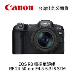 Canon EOS R8 RF 24-50mm F4.5-6.3 IS STM 標準單鏡組 (公司貨)$42,583$43,900