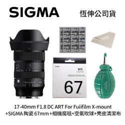 - 最新上市 恆定大光圈SIGMA 17-40mm F1.8 DC For Fujifilm X-mount+SIGMA 陶瓷 67mm保護鏡+相機魔毯+BW-130吹球+3030麂皮清潔布 (公司貨)$35,048