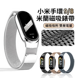 小米手環8/小米手環9米蘭金屬不銹鋼磁吸快拆錶帶腕帶