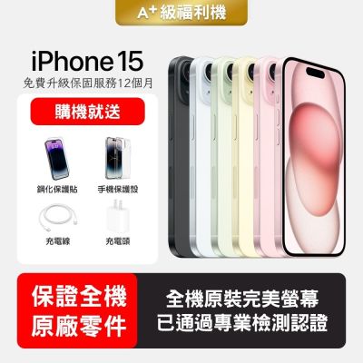 【Apple 蘋果】A+級福利品 iPhone 15 256GB 6.1吋智慧型手機(保證全機原廠零件+全方位保固升級12個月)$16,999$17,893