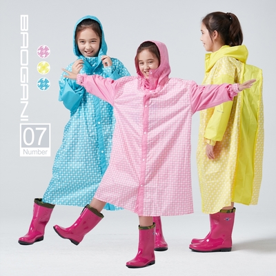 【寶嘉尼BAOGANI】B07兒童千鳥格背包客多功能前開拉鍊雨衣$902$980