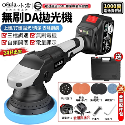 Ogula小倉 拋光機 無刷打蠟機 DA偏心機 帶電量顯示 除玻璃油膜 鍍膜機 打蠟機 無線打蠟機 震拋機(品牌保固)十五節一電$4,219$4,349