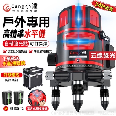 【Cang小達】水平儀 5線APP戶外超強雷射水平儀 【綠光 隨意開關線條】LED電量顯示自動調平打斜線