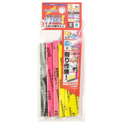 日本GodHand神之手低番數3mm海綿砂紙5入綜合組GH-KS3-A3A(120番/240番/400番)台灣公司貨