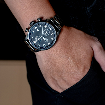 Laco 朗坤 402022 七節不銹鋼錶帶附拉絲摺疊釦 22mm