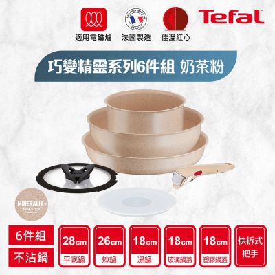 Tefal法國特福 巧變精靈系列不沾鍋6件組-奶茶粉(適用電磁爐)