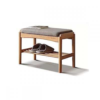 源氏木語京都山毛櫸原木色布面穿鞋椅 Y107T51 亞麻灰 (H014361083)