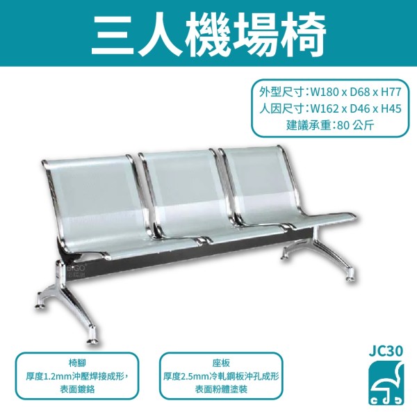 商店JH30C 三人機場椅 無背靠 排椅 公共排椅 看診椅 機場椅 等候椅 連排椅 候車椅 公共座椅