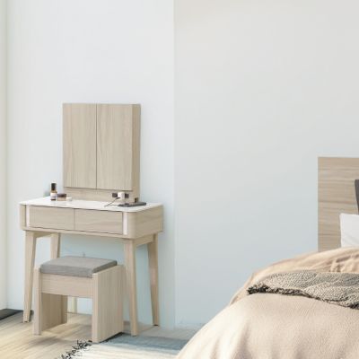 WAKUHOME 瓦酷家具Ariel極簡主義白楓木化妝台組(含椅)-寬*81深40*高150cm