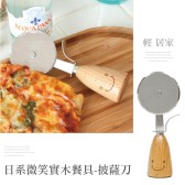 日系微笑實木餐具-披薩刀 PIZZA刀 披薩滾輪刀 切披薩 餐廳 廚房擺飾 原木-輕居家0302