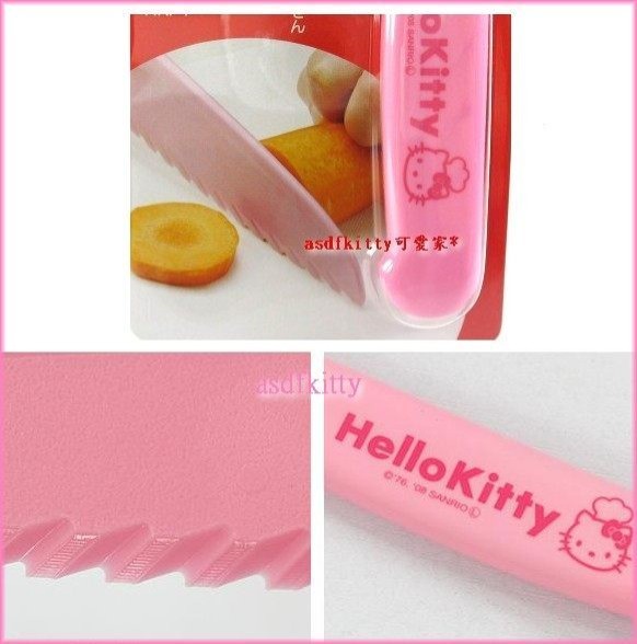 asdfkitty*日本製 KITTY粉紅色波浪安全菜刀-水果刀-兒童用菜刀-廚房新手-手力弱-都好用