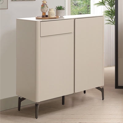 文創集 威瑟雙色3尺二門單抽岩板鞋櫃-90x35x97cm免組