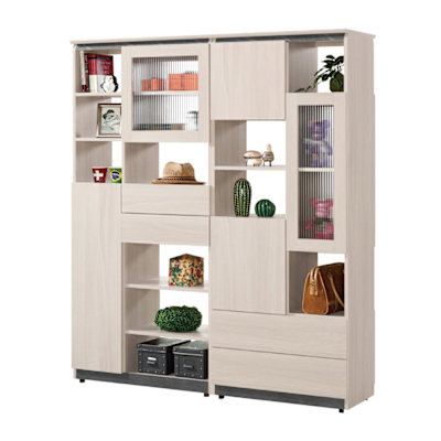 WAKUHOME 瓦酷家具Jerome自然溫潤白梧桐5.5尺屏風鞋櫃組(含穿鞋座)-寬167.7*深39*高202.5cm