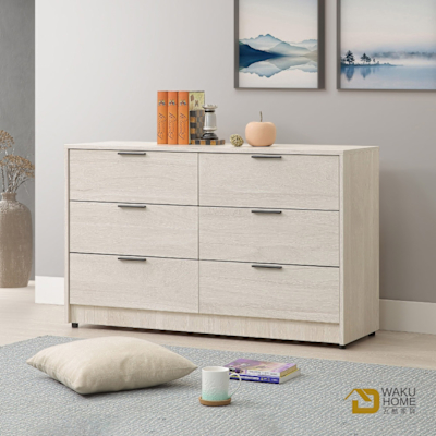 WAKUHOME 瓦酷家具Creamy實木洗白4尺六斗櫃-寬120.1*深40.2*高76.6cm