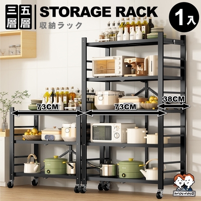 DaoDi免安裝可折疊收納置物架-五層層架(附滑輪/廚房收納/微波爐置物架)