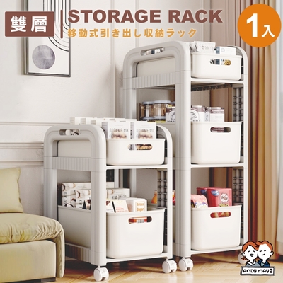 ANDYMAY2 石川抽屜書包收納置物架_雙層 OH-R205【書包架 收納車 收納推車 收納架 收納櫃 附輪推車】
