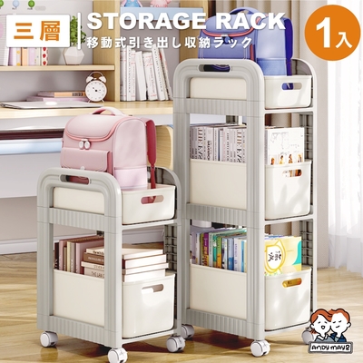 ANDYMAY2 石川抽屜書包收納置物架_三層 OH-R205【書包架 收納車 收納推車 收納架 收納櫃 附輪推車】