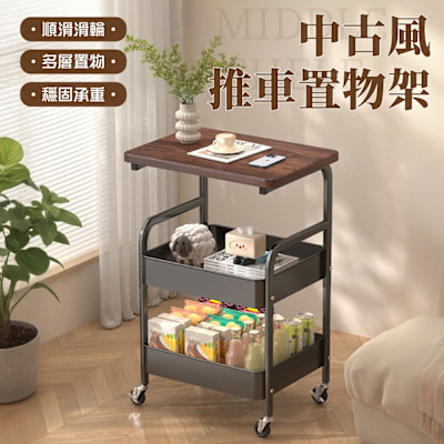IDEA-復古風雅三層移動置物推車/兩色可選