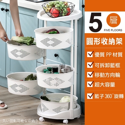 STYLE 格調 優質PP-360度旋轉多功能收納籃收納架-五層收納架(籃子可拆卸/可調節高度)