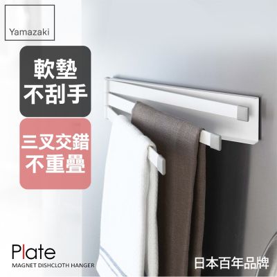 日本【YAMAZAKI】Plate磁吸式三桿毛巾架★抹布架/毛巾收納/廚房收納
