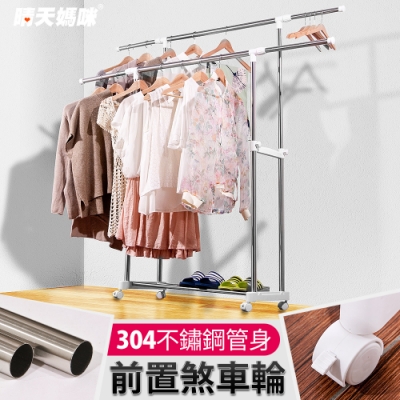 晴天媽咪 304不鏽鋼 伸縮雙桿衣架