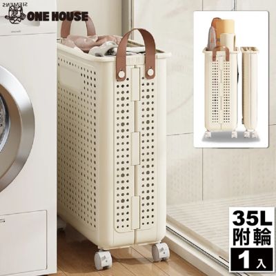 【ONE HOUSE】35L 田川帶手把折疊收納籃 收納箱 洗衣籃-附輪款(中款 1入)$350