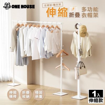 【ONE HOUSE】伸縮款_3in1鐵製 艾加多功能兩用折疊曬衣架 (吊衣架/掛衣架/室內衣架/摺疊晾衣架/衣帽架)$1,180