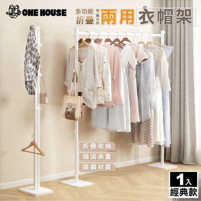【ONE HOUSE】3in1鐵製 艾加多功能兩用折疊曬衣架_經典款 (吊衣架/掛衣架/室內衣架/摺疊晾衣架/衣帽架)$1,080