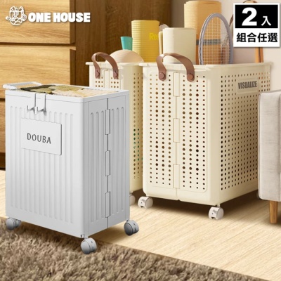 【ONE HOUSE】50L 田川帶手把折疊收納籃 收納箱 洗衣籃-附輪款(大款 2入)$699