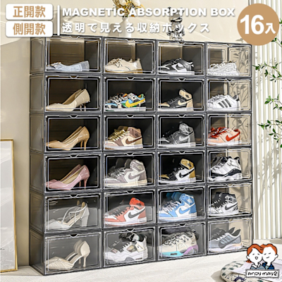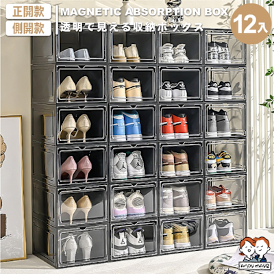 ANDYMAY2 巴黎加厚磁吸可疊加鞋盒_雙開款 (6入) OH-Q110【側開/正開 收納盒 展示盒 球鞋收納 鞋架 鞋櫃 透明收納】
