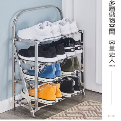 誠宜居家美學 免安裝不鏽鋼折疊四層鞋架$44088折