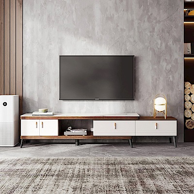林氏木業現代撞色可伸縮電視櫃 LS186-胡桃色+白色 (H014335920)$7,780