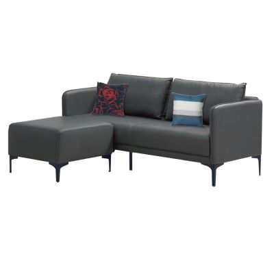 文創集 凱默灰色耐刮皮革小L型獨立筒沙發組合(三人座+椅凳組合)-195x167x99cm免組$20,506$22,784