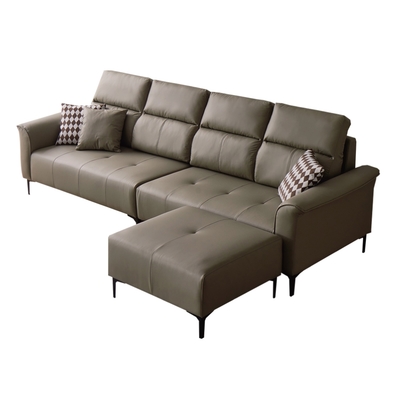 【文創集】藍蒂 時尚灰透氣耐磨皮革L型沙發組合(四人座+椅凳)-244x166x105cm免組$31,81682折
