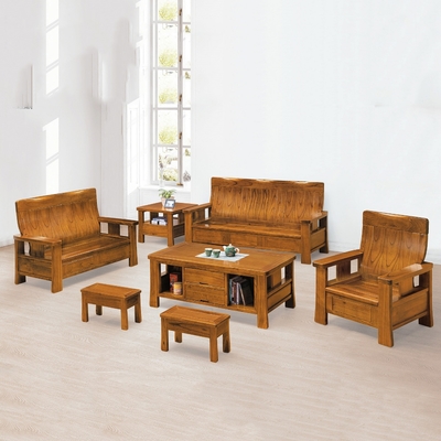 ASSARI-瑪蒂桃花心木L型沙發+大茶几(含2椅凳)