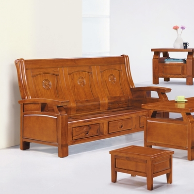 MUNA家居 588型樟木色實木組椅(三人座) 196X73X99cm