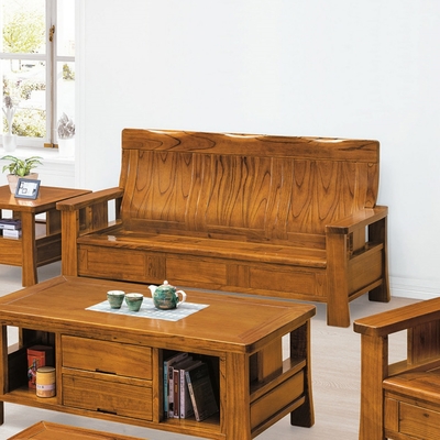 文創集 歌里柚木色三人座實木椅(底部抽屜可收納)-191x77x102cm免組$15,079$17,740