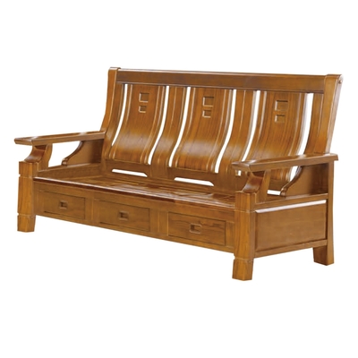 文創集 歌里柚木色三人座實木椅(底部抽屜可收納)-191x77x102cm免組$23,48983折
