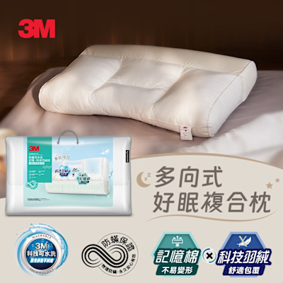 獨家送牛奶鍋 3M 防蹣可水洗科技羽絨枕-可調式多區複合型(多向好睡枕)$2,690