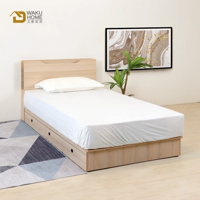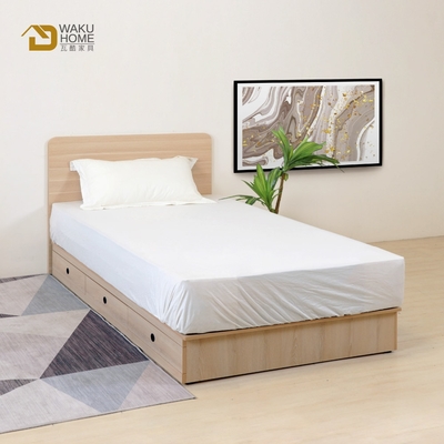 WAKUHOME 瓦酷家具Molly日系無印風三抽3.5尺床箱型2件組(床頭箱+床底)-寬106.3*深201.7*高100cm