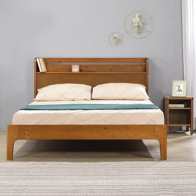 Boden-奧尼5尺雙人書架型實木床架/床組-附插座(兩色可選)$8,63065折